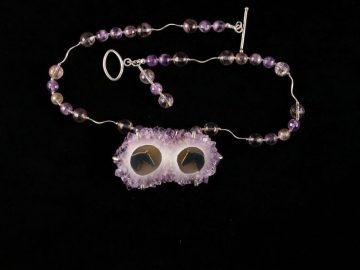 Chinese Pottery Pendant Sterling Bird, Cat’s Eye
