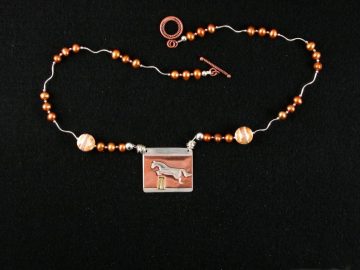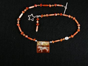 Copper leaping horse “Horses Give Us Wings” carnelian beads